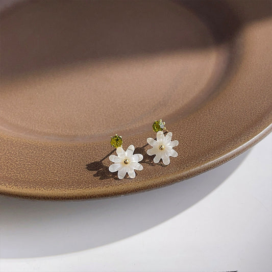 A廠 韓系迷你小雛菊鑲鑽花朵環保銅銀針耳環批發 折扣@洽客服 26.03.10「B-867」