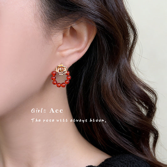 A廠 銅|日韓款 紅瑪瑙串珠銀針耳環 批發 折扣@洽客服 26.02.W1「7271」