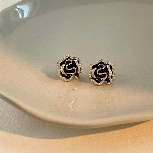 A廠 韓系小香風氣質黑色山茶花環保銅銀針耳環批發 折扣@洽客服 26.03.10「2197」