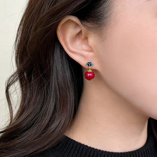 A廠 銅鍍啞金|日韓款 「吉祥如意」紅珍珠銀針耳環 批發 折扣@洽客服 26.02.W1「7270」