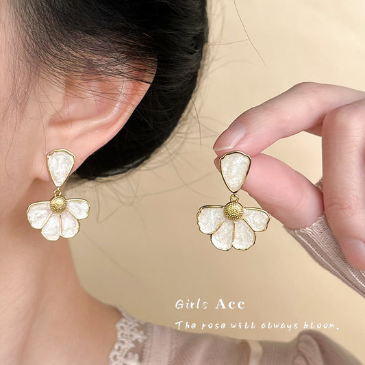 A廠 銅|日韓款 氣質滴油雛菊銀針耳環 批發 折扣@洽客服 26.02.W1「4132-4133」