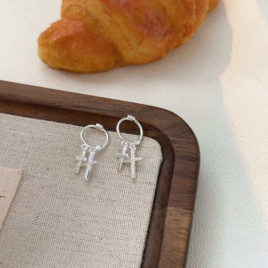 C3廠 韓國韓版S925純銀|雙層十字架耳環 批發 折扣@洽客服 26.02.W3「ES197」