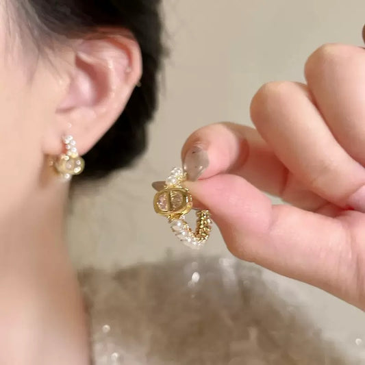 A2廠 韓國韓版鑲鑽弧形珍珠銀針耳環 批發 折扣@洽客服 26.03.W1「HE9936-1」