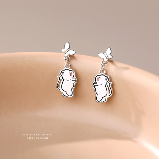 C廠 S999足銀|韓國韓版貓爪小魚耳環 26.02.W1「E6094」