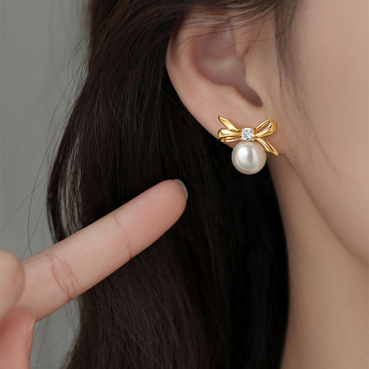 A2廠 韓國韓版鋯石蝴蝶結珍珠銀針耳環 批發 折扣@洽客服 26.03.W1「HE30793」