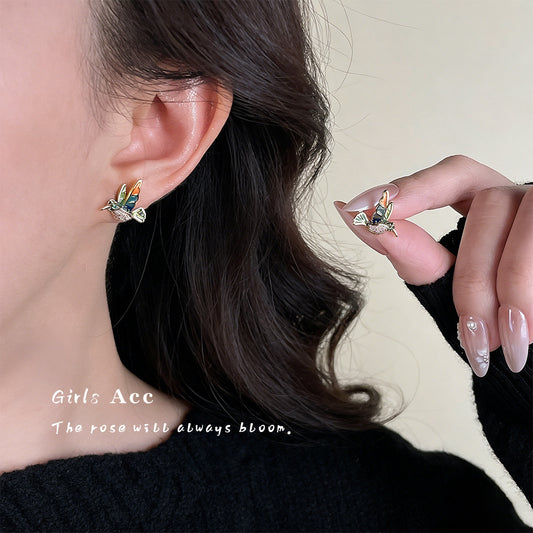 A廠 銅|日韓款立體琺瑯滴油彩色小鳥銀針耳環 批發 折扣@洽客服 26.02.W3「3241」