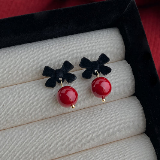 A廠 銅|日韓款 酒紅珍珠植絨蝴蝶結銀針耳環 批發 折扣@洽客服 26.02.W1「7290」