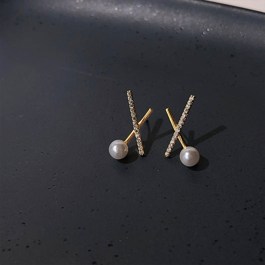 A廠 韓系簡約交叉鋯石環保銅銀針耳環批發 折扣@洽客服 26.03.10「2359」
