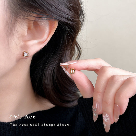 A廠 銅鍍金|日韓款棕色滴釉方糖鋯石銀針耳環 批發 折扣@洽客服 26.02.W3「7112」