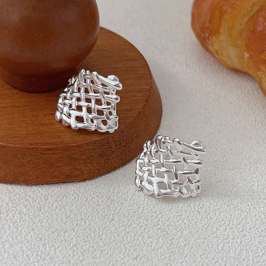 C3廠 韓版重工編制網格幾何S925純銀耳環 批發 折扣@洽客服 25/11.W4「HES012-1」