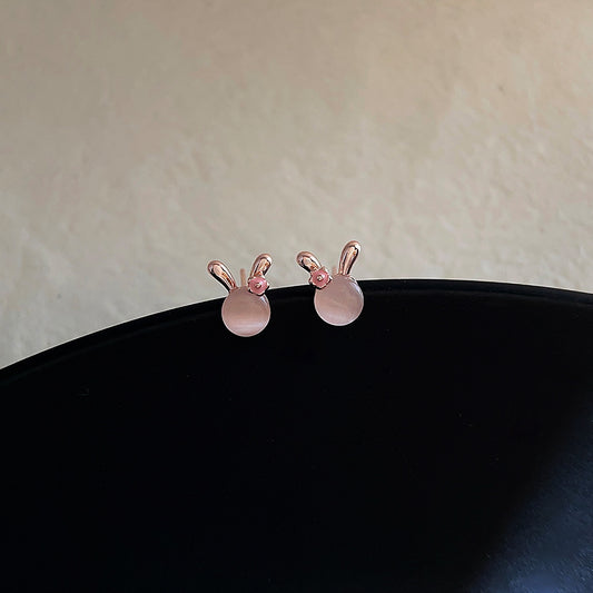 A廠 韓系甜美小兔子玫瑰金環保銅銀針耳環批發 折扣@洽客服 26.03.10「2502」