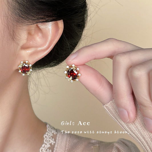 A廠 韓系復古酒紅鋯石銀針耳環 批發 折扣@洽客服 25.06.W2「5819」