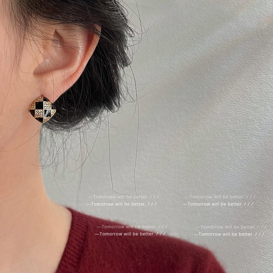 A廠 韓系復古文藝黑白棋盤格銀針耳環 批發 折扣@洽客服 25.06.W2「2194」