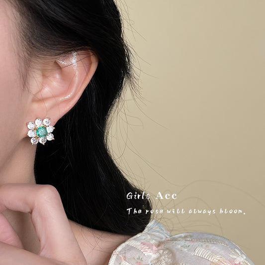 A廠 韓系湖水藍冰花鋯石花朵銀針耳環 批發 折扣@洽客服 25.06.W2「6043」