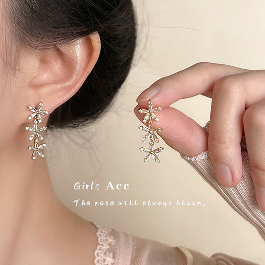 A廠 韓系鋯石花朵流蘇銀針耳環 批發 折扣@洽客服 25.05.W4「5698」