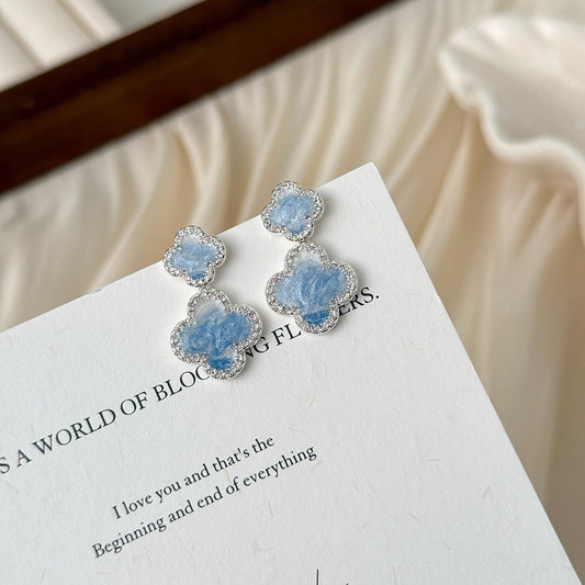 A2廠 韓國韓版鑲鑽藍花銀針耳環 批發 折扣@洽客服 25.05.W5「HE26218」