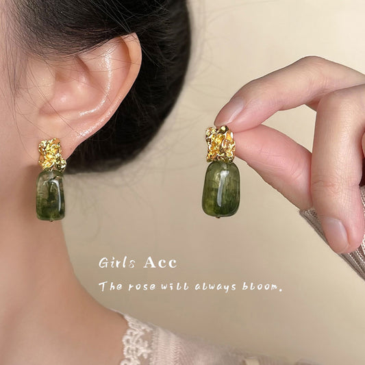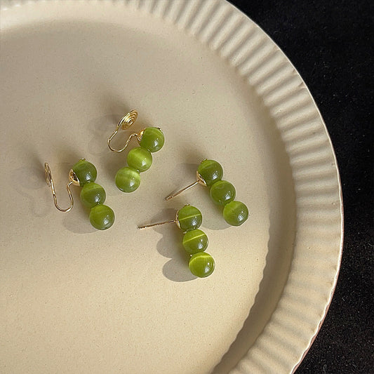 A廠 韓系橄欖綠玻璃貓眼石銀針耳環 批發 折扣@洽客服 25.05.W4「2213-W430」