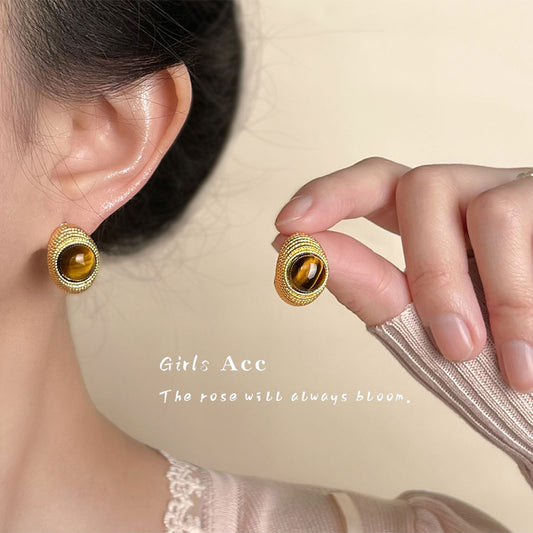 A廠 韓系復古虎眼石銀針耳環 批發 折扣@洽客服 25.05.W4「5691」