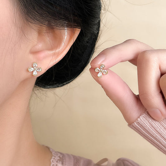 A廠 韓系微鑲鋯石四葉花銀針耳環 批發 折扣@洽客服 25.05.W4「5680」