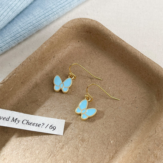 A廠 韓系藍蝴蝶銅鍍14K金銀針耳環 批發 折扣@洽客服 25.05.W4「5699」