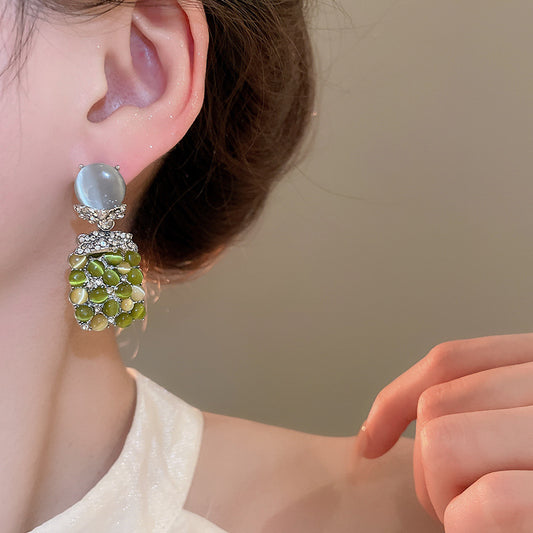 A2廠 韓國韓版鑲鑽貓眼石方形銀針耳環 批發 折扣@洽客服 25.05.W4「HE25841」