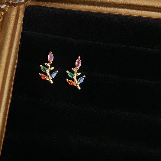 A廠 韓系彩色鋯石樹葉銀針耳環 批發 折扣@洽客服 25.05.W4「5682」