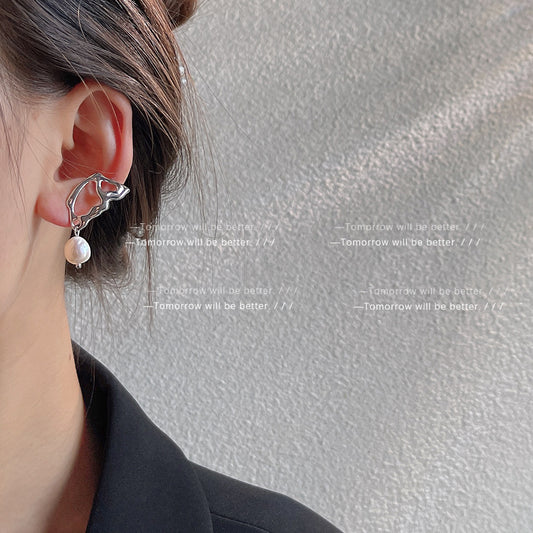 A廠 日韓不對稱鏤空蝴蝶淡水珍珠銀針耳環 批發 折扣@洽客服 25.04.W4「A975」