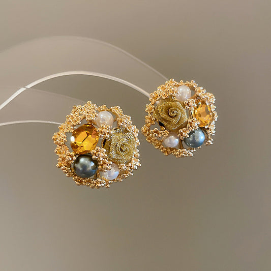 A2廠 韓國韓版鑲鑽花朵珍珠銀針耳環 批發 折扣@洽客服 25.05.W1「WE2161」
