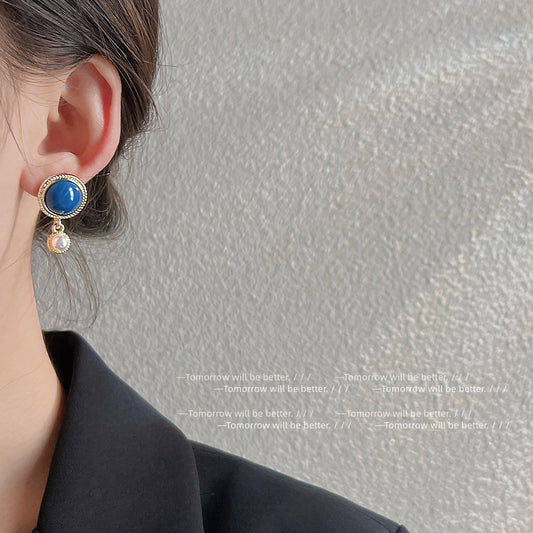 A廠 韓系氣質藍珍珠銀針耳環 批發 折扣@洽客服 25.04.W2「502」