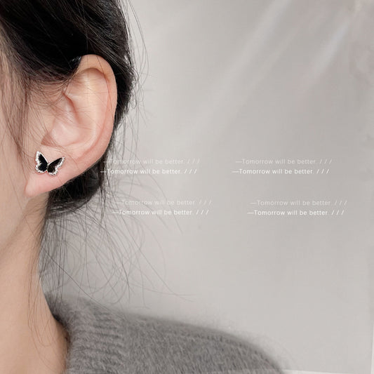 A廠 韓系黑蝴蝶銀針耳環 批發 折扣@洽客服 25.04.W2「2596」