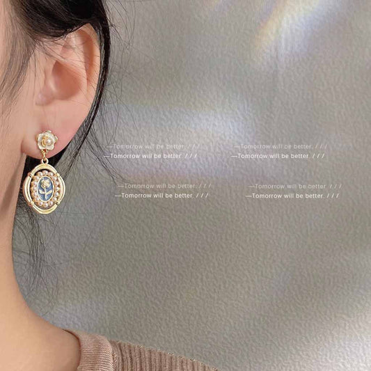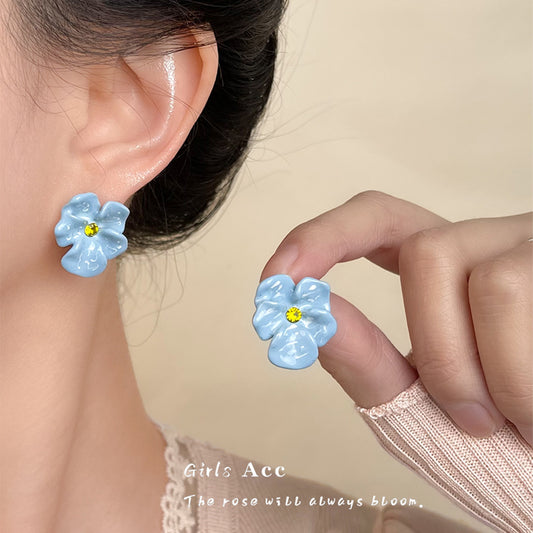 A廠 韓系藍色暈染滴油花朵銀針耳環 批發 折扣@洽客服 25.04.W1「4303」