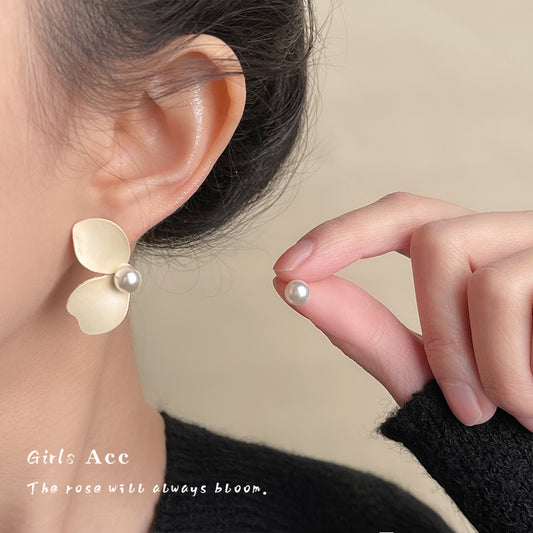 A廠 韓系溫柔山茶花珍珠銀針耳環 批發 折扣@洽客服 25.04.W2「C-702」