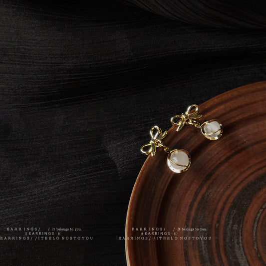 A廠 韓系復古蝴蝶結貓眼石銅鍍14K金銀針耳環 批發 折扣@洽客服 25.04.W2「B-681」