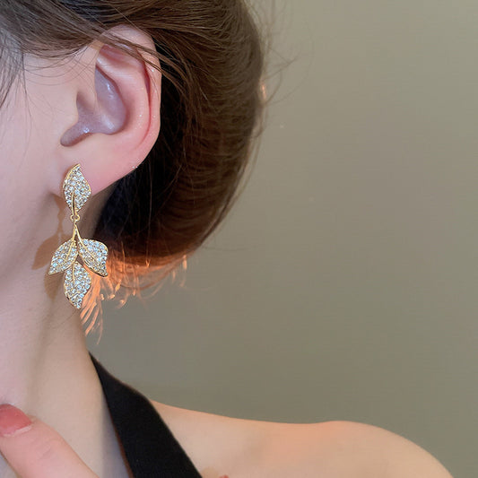A2廠 韓國韓版鋯石樹葉流蘇耳環 批發 折扣@洽客服 25.04.W3「HE25228」