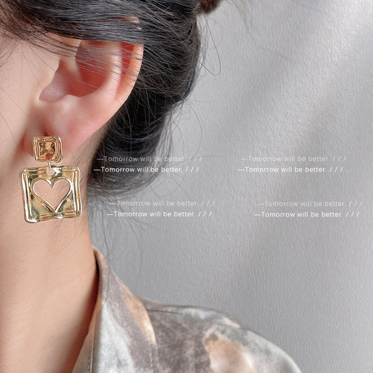 A廠 韓系方形鏤空愛心銀針耳環 批發 折扣@洽客服 25.04.W2「670」