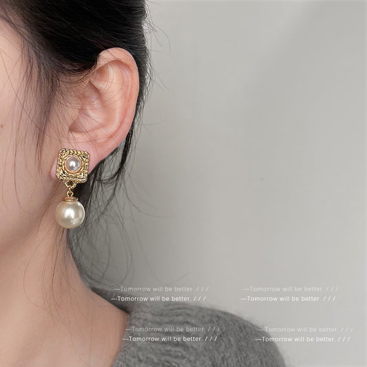 A廠 日韓復古水滴形長珍珠銀針耳環 批發 折扣@洽客服 25.03.W4「1658」