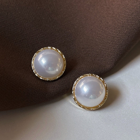 A廠 日韓彩光鐳射圓形珍珠銀針銀針耳環 批發 折扣@洽客服 25.03.W3「C-717」