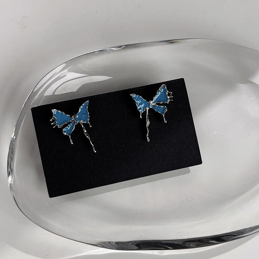 A廠 日韓藍色滴油液態蝴蝶銀針銀針耳環 批發 折扣@洽客服 25.03.W3「2081」