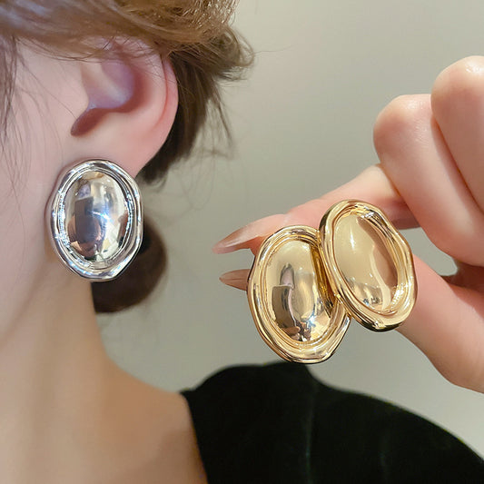 A2廠 韓國韓版褶皺橢圓鍍14K金銀針耳環 批發 折扣@洽客服 25.03.W2「HE24741」