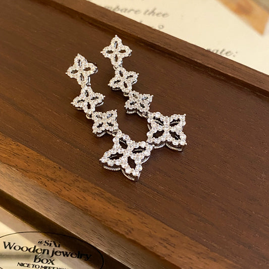 A2廠 韓國韓版鋯石菱形花流蘇銀針耳環 批發 折扣@洽客服 25.03.W2「WE1654」