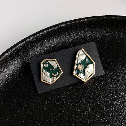 A廠 日韓油畫感幾何滴油銀針耳環 批發 折扣@洽客服 25.03.W2「2166」