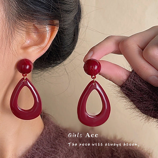 A廠 日韓復古酒紅幾何壓克力銀針耳環 批發 折扣@洽客服 25.03.W2「A537」