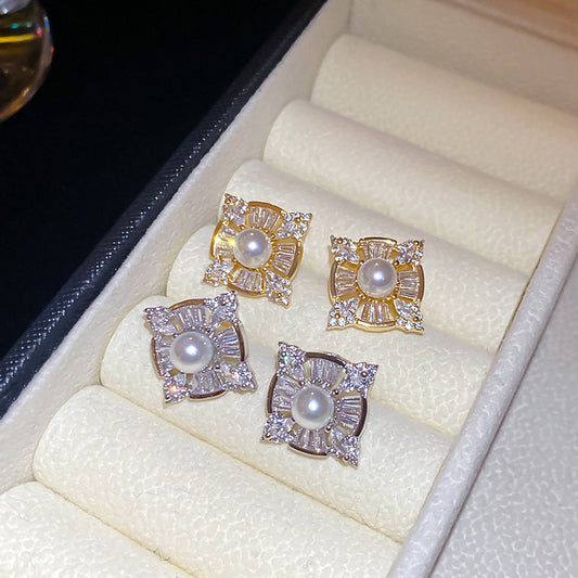 A2廠 韓國韓版鋯石方形珍珠耳環 批發 折扣@洽客服 25.02.W4「HE24730」