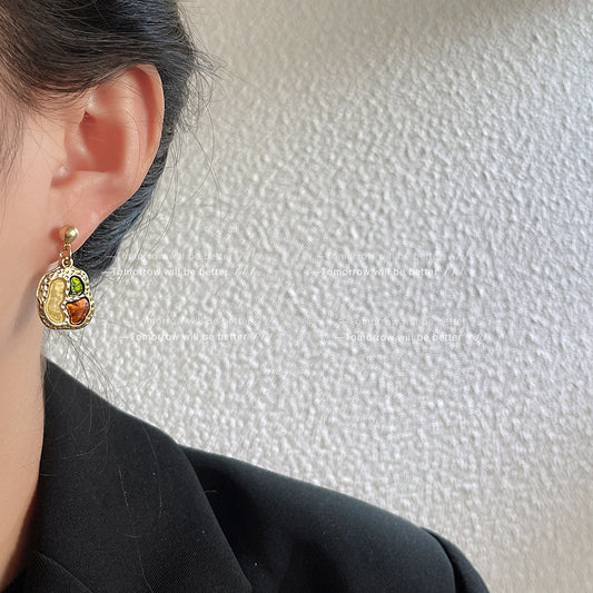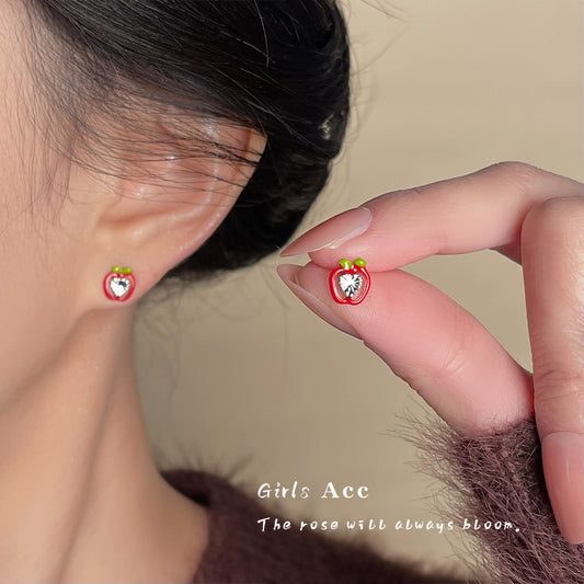 A廠 韓系小巧滴油小蘋果銀針耳環 批發 折扣@洽客服 25.02.W3「5279」
