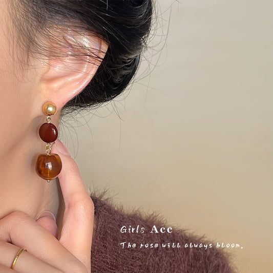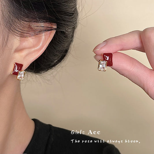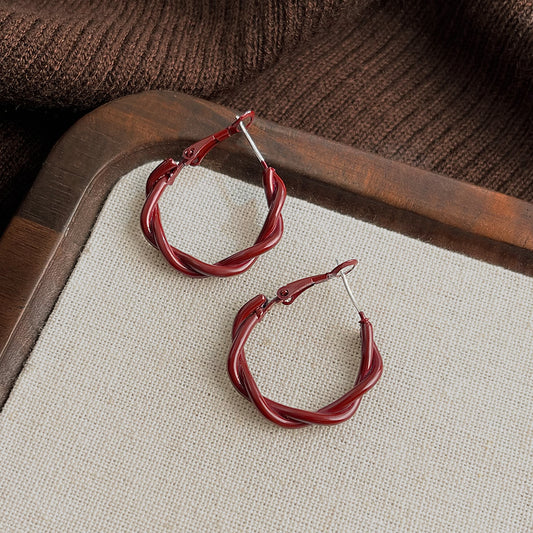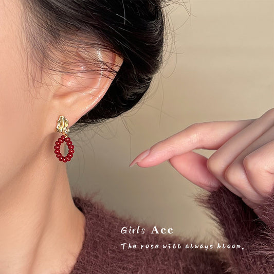 A廠 韓系復古酒紅滴油銀針銀針耳環 批發 折扣@洽客服 25.02.W4「5301」