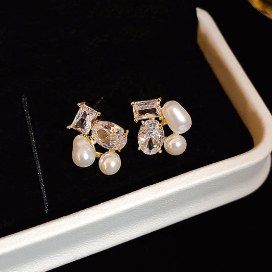 A2廠 韓國韓版鋯石幾何淡水珍珠耳環 批發 折扣@洽客服 25.02.W4「HE24778」