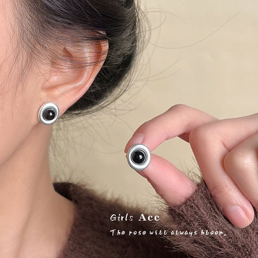 A廠 韓系黑瑪瑙銀針銀針耳環 批發 折扣@洽客服 25.02.W4「5310」