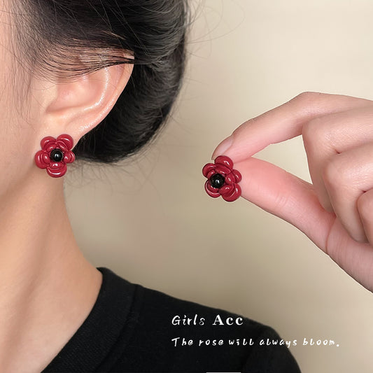 A廠 韓系酒紅立體山茶花銀針銀針耳環 批發 折扣@洽客服 25.02.W4「5370」