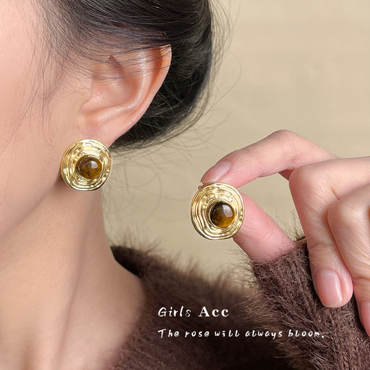 A廠 韓系幾何虎眼石銀針銀針耳環 批發 折扣@洽客服 25.02.W4「5005」