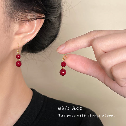 A廠 韓系酒紅串珠銅鍍14K金銀針銀針耳環 批發 折扣@洽客服 25.02.W4「S81」